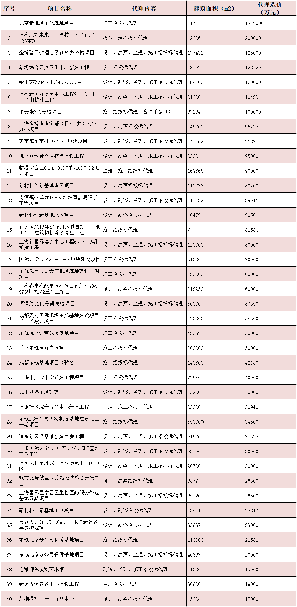 部分公共建筑工程招标代理业绩一览表